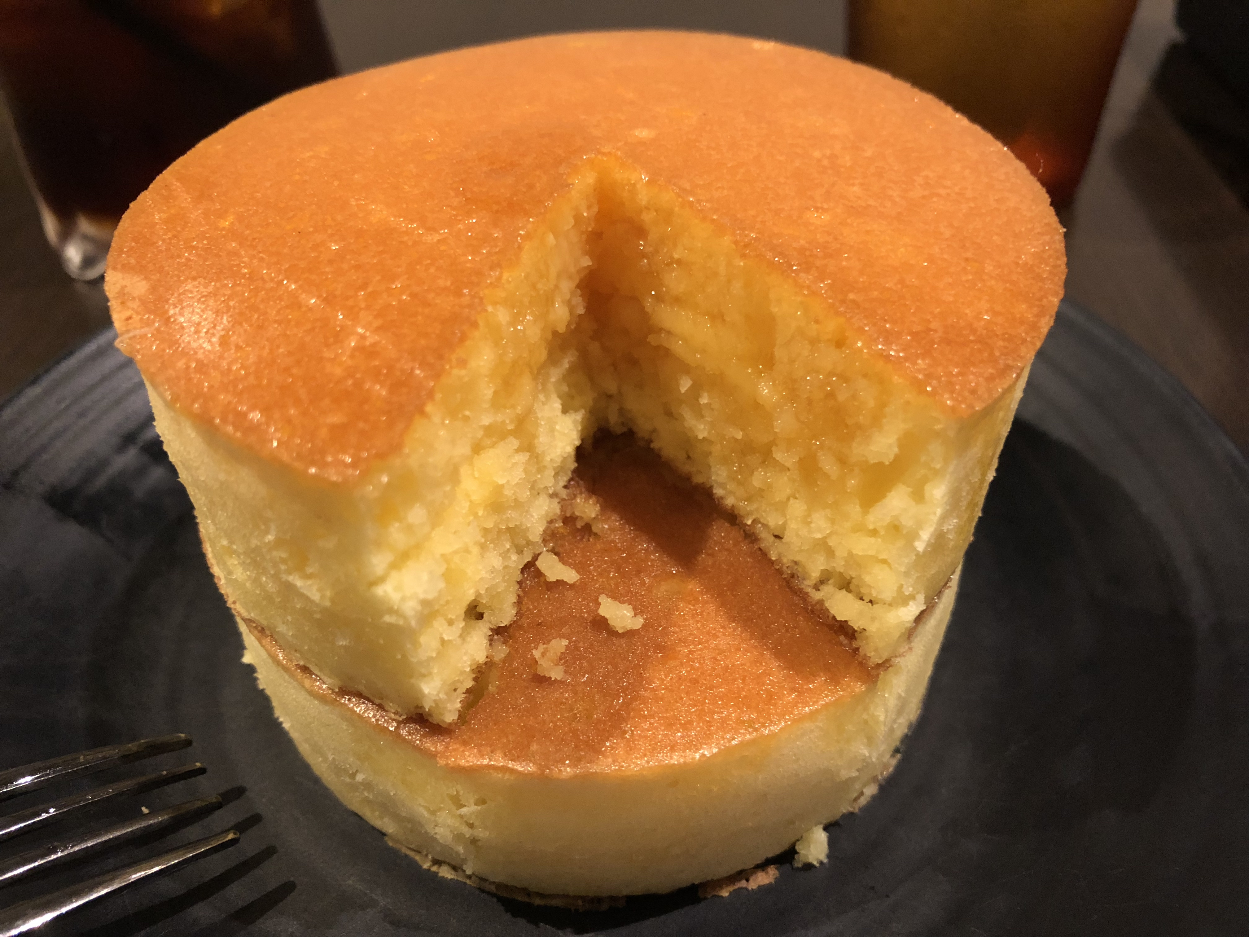 こちらのホットケーキは見た目も美しく、味も期待を裏切らない正統派ホットケーキです。銅板で焼いているので綺麗にそしてしっかり焼けておりふっくらしているとのこと。これ食べちゃうと他店のパンケーキが…。