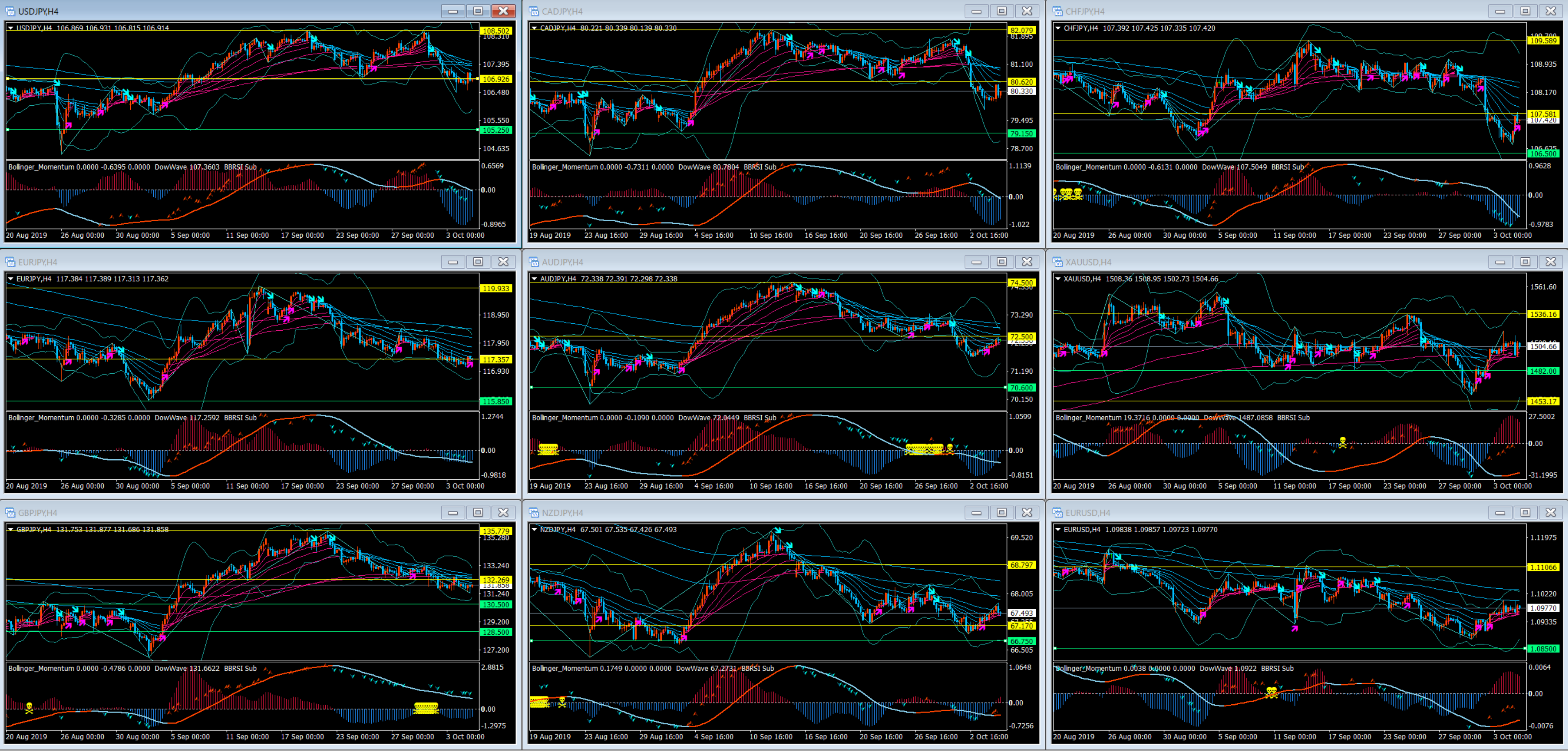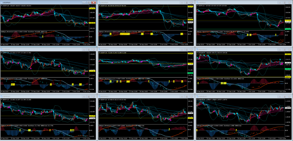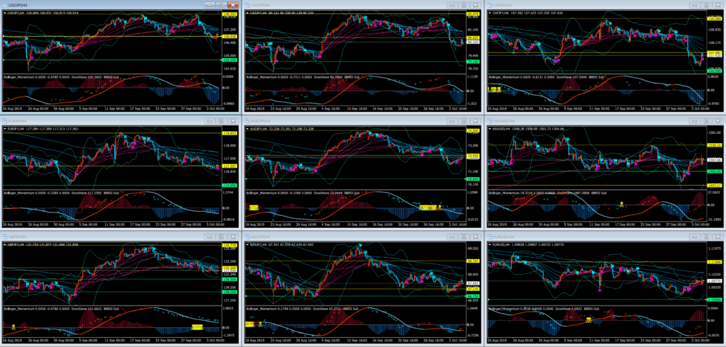 4時間で見た場合には、ユーロ・ポンドのクロス円は転換になるのか?に注目し先週の値動きが悪いオセアニアとスイスは力を溜めて今週開放するのかという観点から観察していきたい。