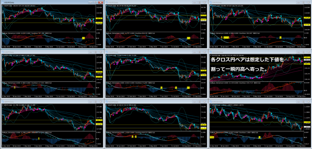 追加利下げを読んでドル安に向かっていくのでは?という見方と、リセッションを不安視しつつも不安が和らげば反発を見せる現金主義な市場ムードがかなり濃く入り混じっているので108円~107円のレンジを行ったり来たりしている9月10月だと感じています。