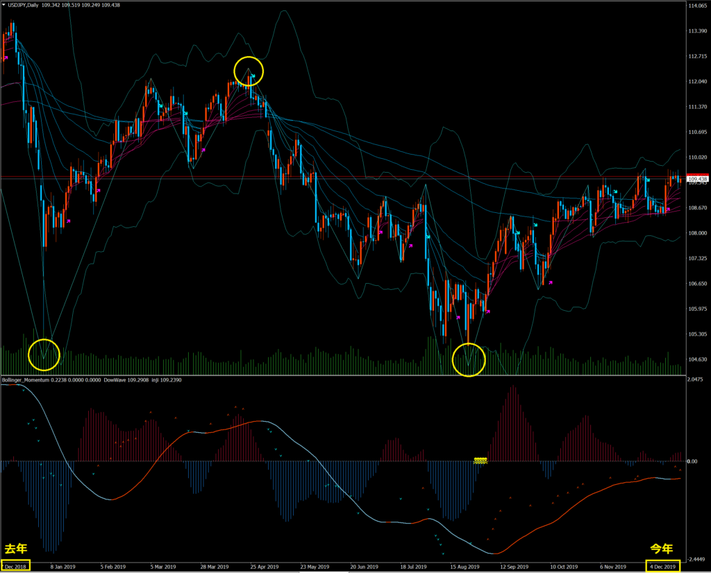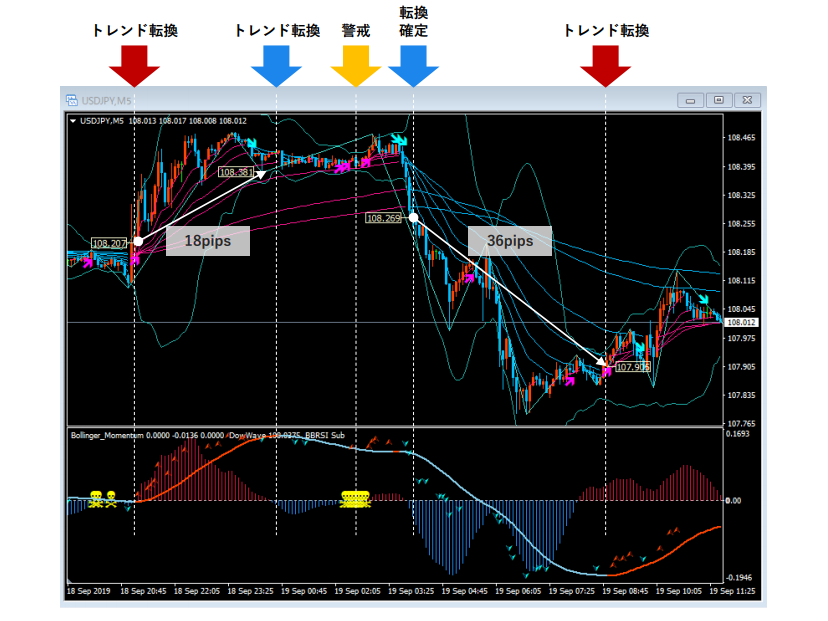 ※Bollinger_MomentaumやBBRSIなども表示しておりますが解説用で、自分のトレードには無くても問題ないレベルです。