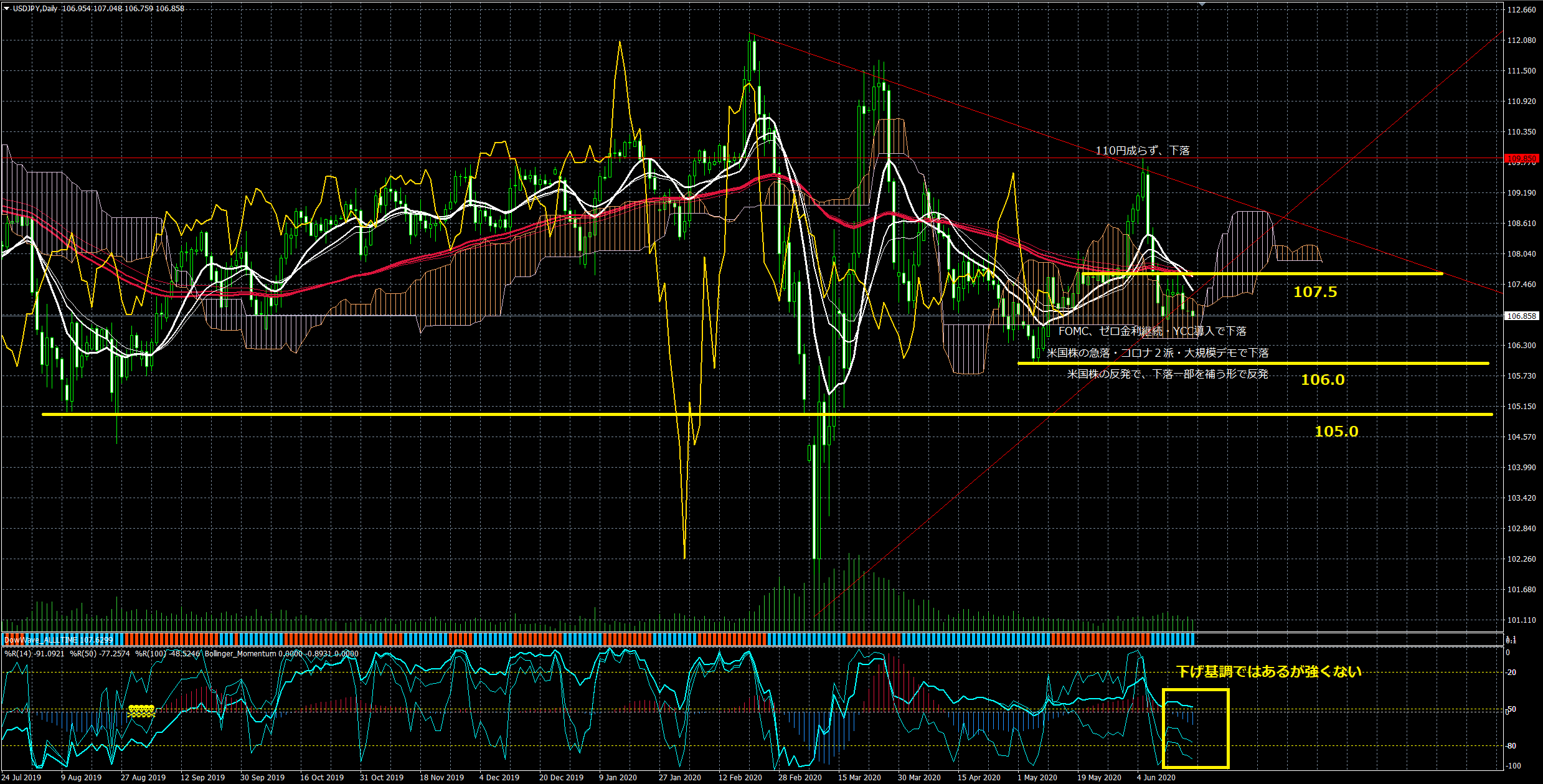 先週のコメント「上値が重く 108円台の下限が105.5円ぐらい」
