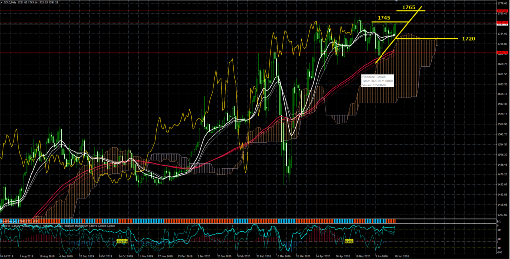限定的に値幅を記載しましたが(1720-1745-1765)金はボラがありすぎて瞬間的に40ポイント*2日が出れば 1660まで下がってしまう破壊力です。なのでそういったトンデモない事態を排除した値動きでマークとします。