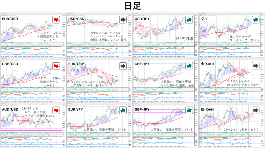 ペアごとに見るポイントは違うがイージーな局面。円ペアを軸に手堅いトレードで振り回されないようにすればOK