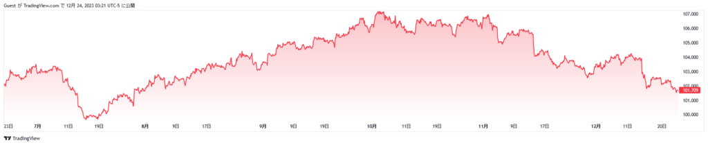 12/23(閉場)101.70 先週比 -0.89