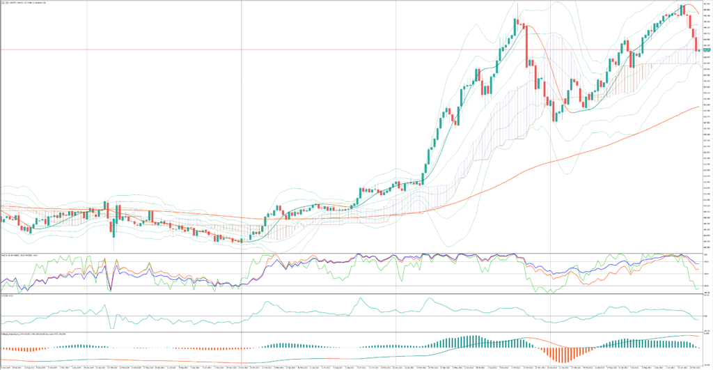 雇用統計の数値は良い結果であったが、DXY 103.9でクローズ、104台をキープ出来ずに週末を迎えた。ドル円チャートは、テクニカルでもダウントレンドが若干優勢。WMA200で先行して実体↓。SMA200のサポートから上がりきれるのか?という状況。