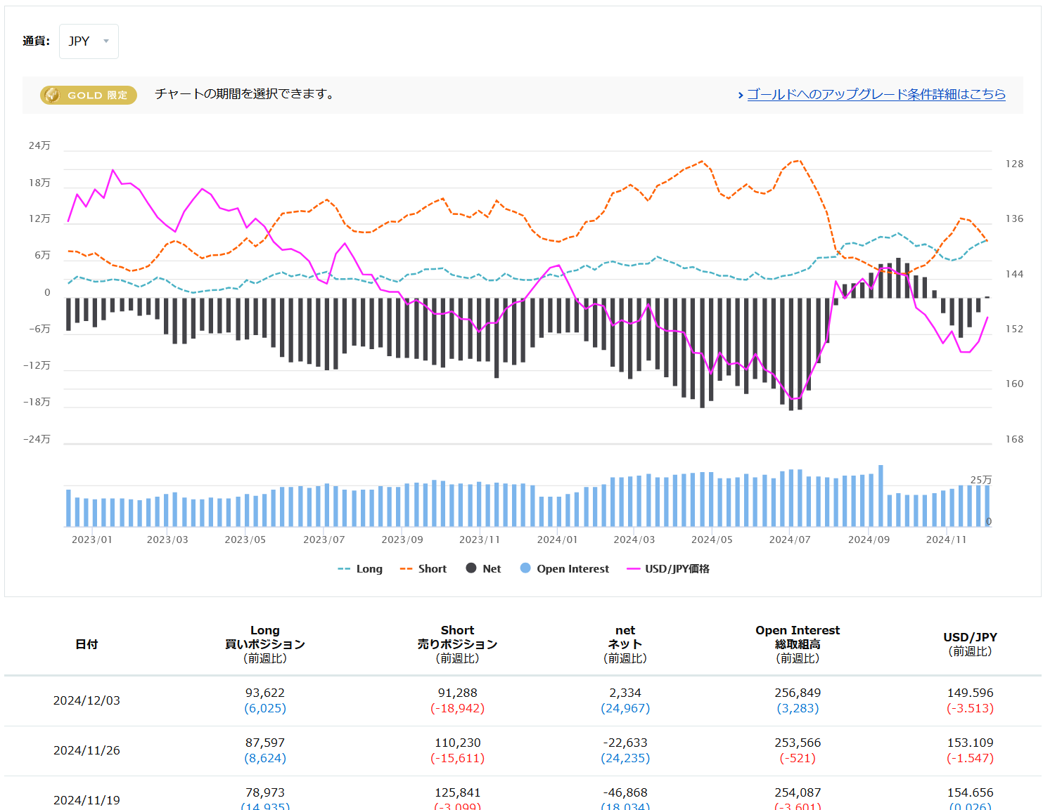 円ロングに再び転じました。円キャリーなどのニュースも増えてきたところです。年末雰囲気とともにショートの解消になりましたが、ロングの勢いが強いのか?というと、まだ強いトレンドにはなり切れていないところが難しい。